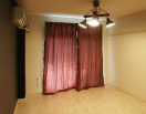 室内に入ると、一見、オーガニックテイストで程よく落ちついて見える空間。 片面を覆う黒檀のような壁紙は、間近で見ると別の輝きを発し、凄艶な魅力を感じます。 ナチュラルな木目もいいけれど、落ちつきすぎるのも好みじゃない。 そんなあなたにうってつけです。木の素材が活きた天井照明と、白塗りレンガ調の壁面が若干の若々しさを感じさせながらも、軽々しくないちょっとだけ大人の空間を演出しています。